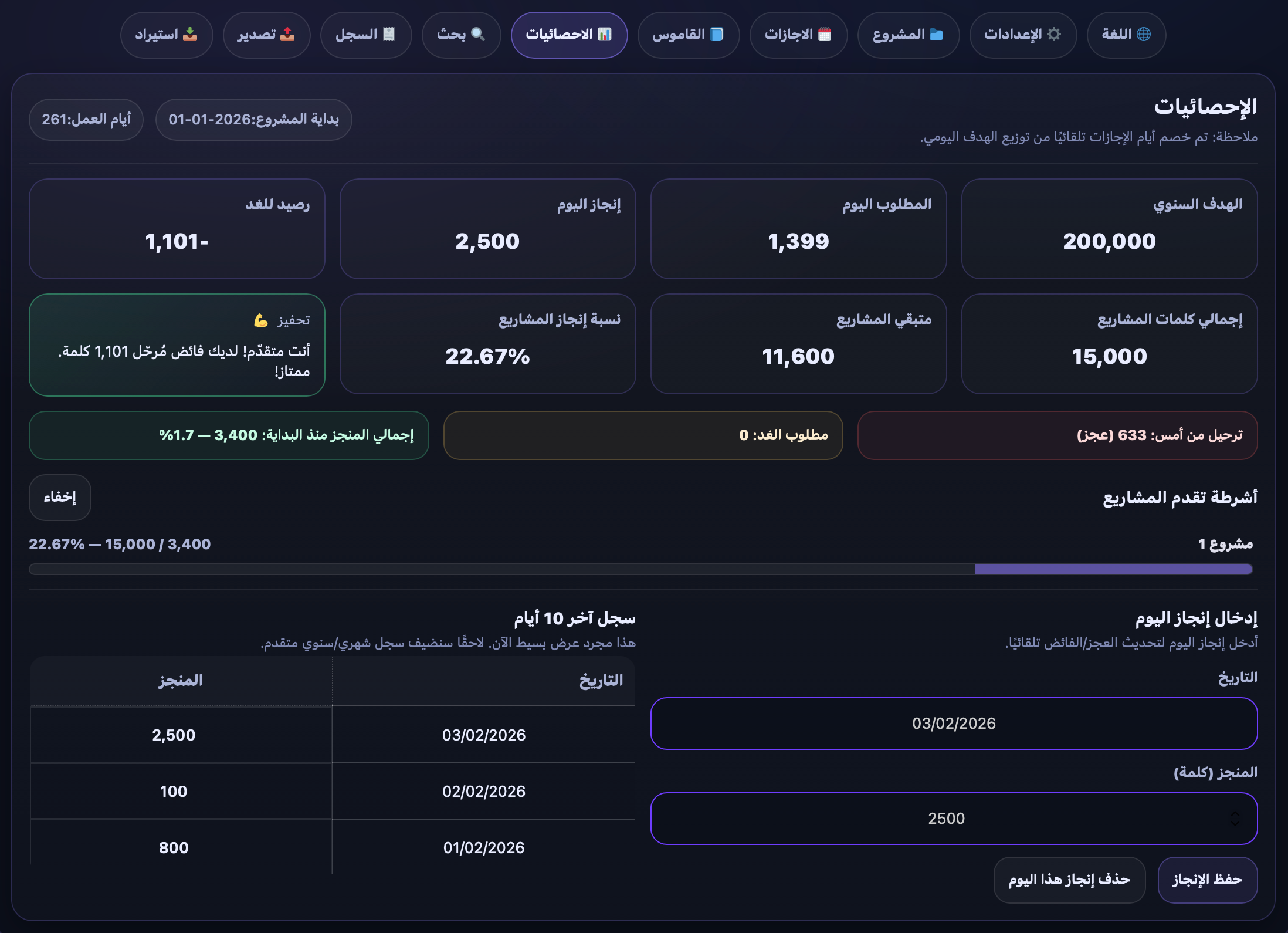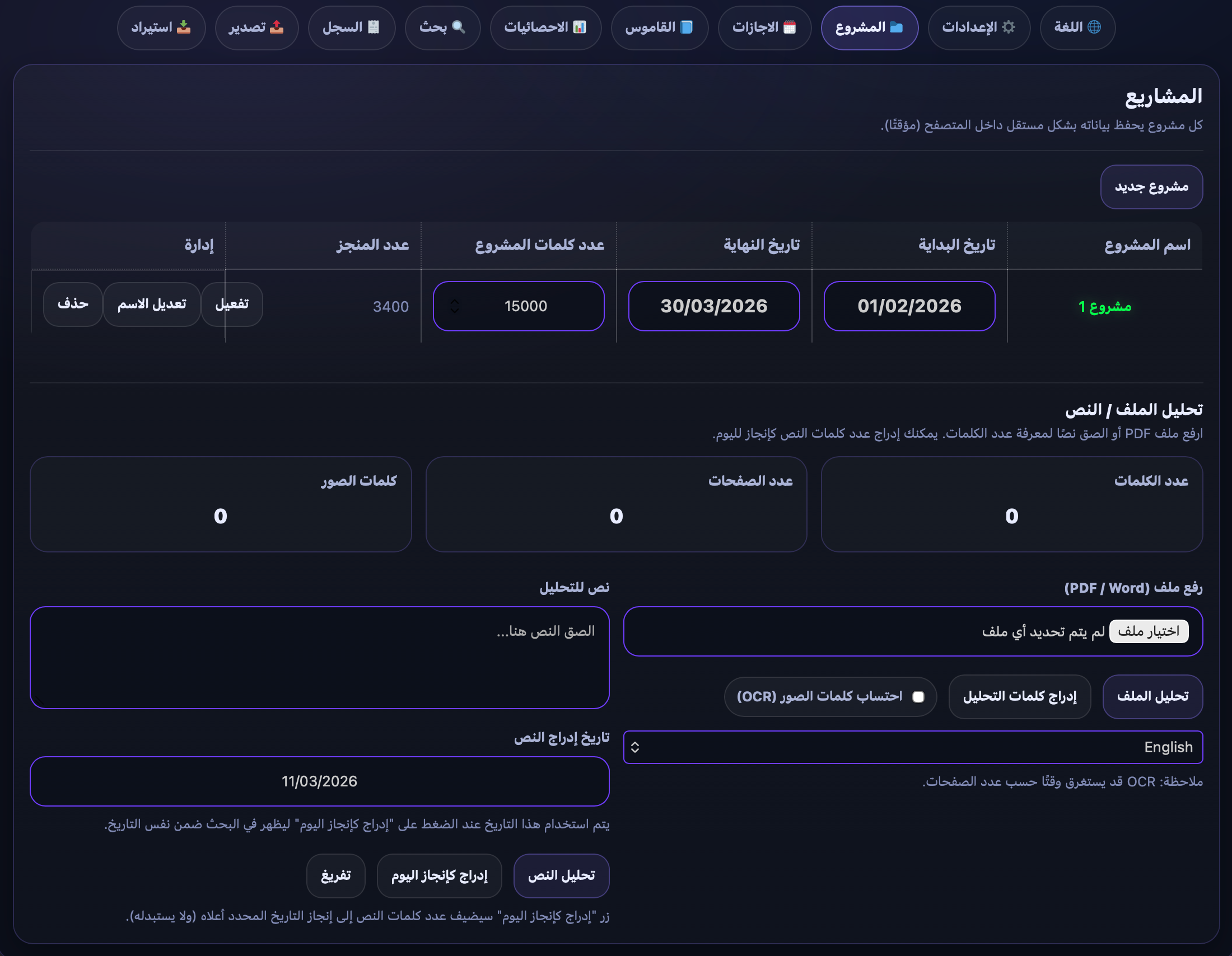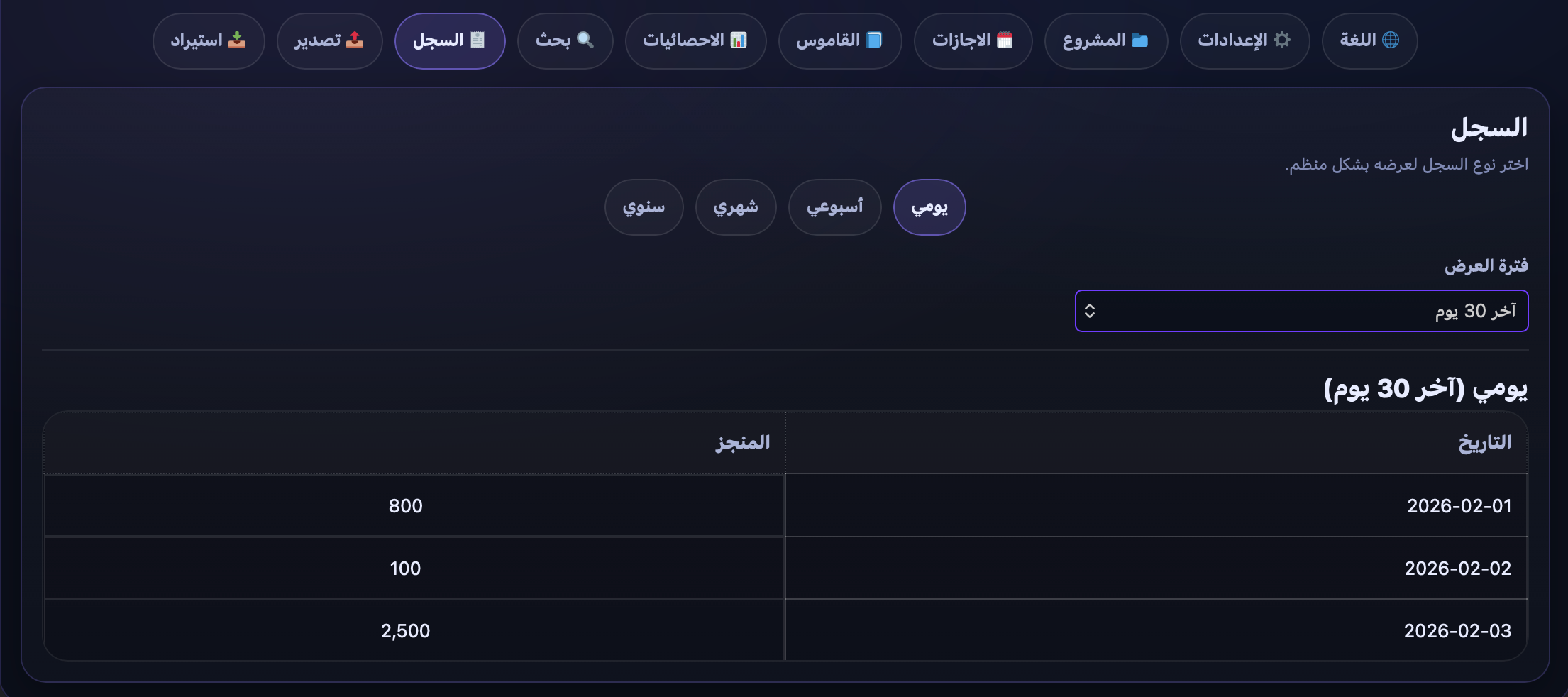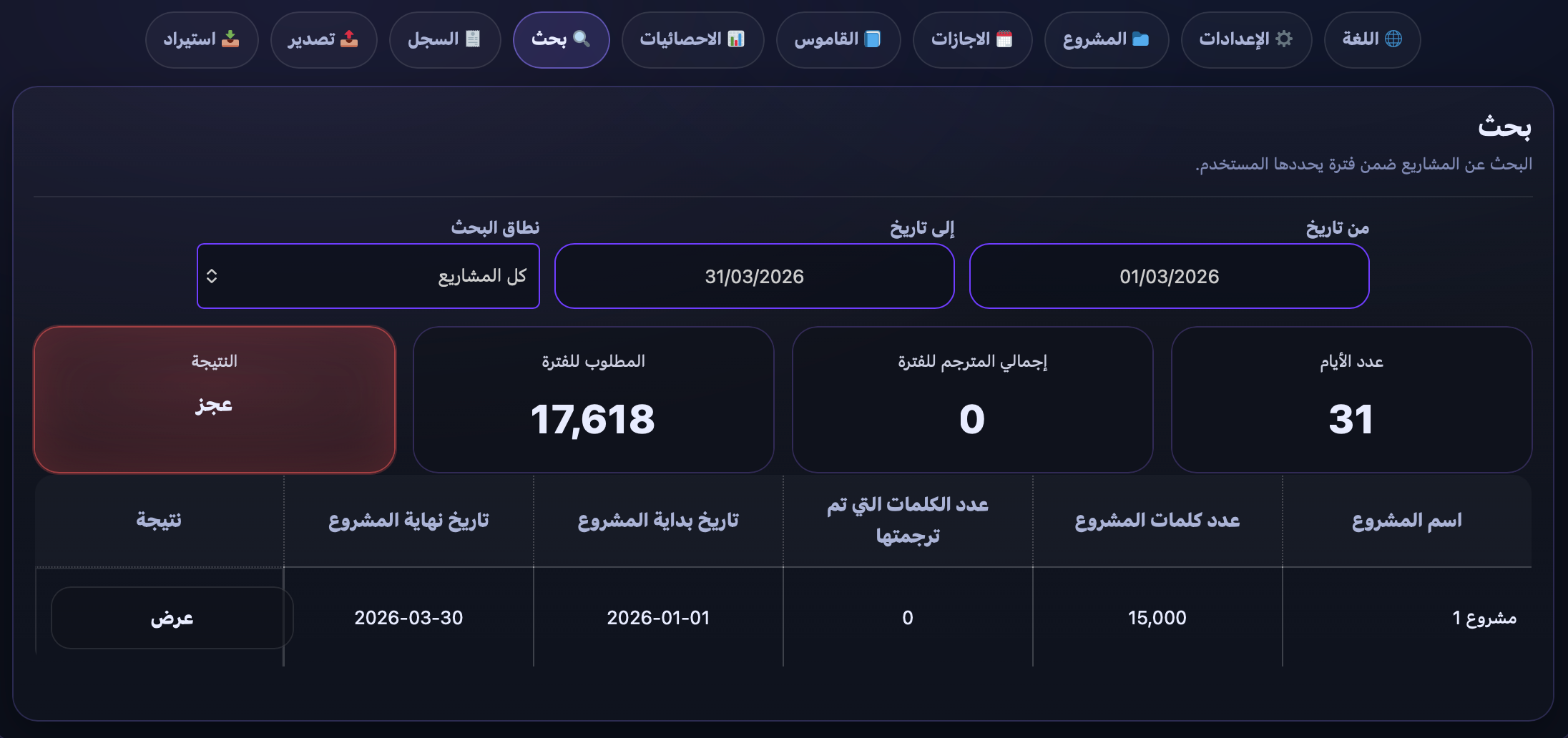 الرئيسية/معرض صور نظام الترجمة معرض صور نظام الترجمة الإحصائيات الإعدادات المشروع الإجازات اجتماع القاموس البحث السجل